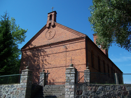 Bryła dzisiejszego kościoła, pochodzi z połowy XIX wieku, kiedy to rozebrano pierwotną, drewnianą budowlę świątyni, a na jej miejsce postawiono nową, ceglaną. Wysoka wieża, wybudowana w 1860 roku, przez 17 lat stała wolno, zanim połączono ją z rozbudowanym kościołem. Czy w tym samym okresie odlano trzy mosiężne dzwony? A może były one znacznie starsze? Tylko jeden z nich, ozdobiony intrygującym łacińskim napisem, przetrwał do naszych czasów.