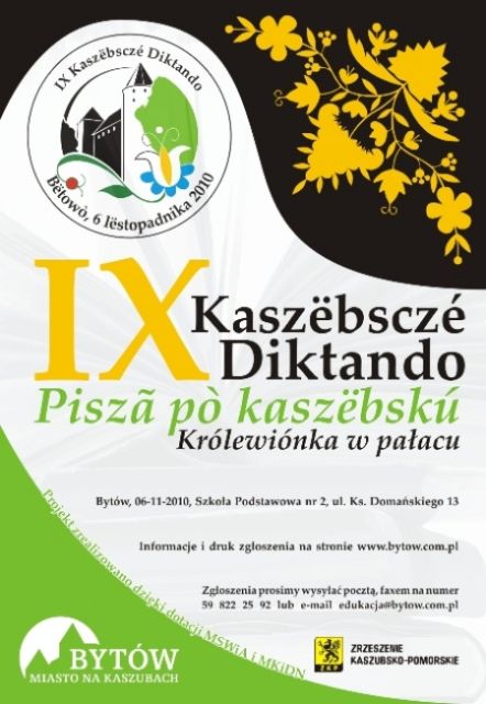 Już w najbliższą sobotę 6 listopada w Szkole Podstawowej nr 2 w Bytowie odbędzie się IX Dyktando Kaszubskie. Do udziału w tych zmaganiach Burmistrz Miasta Bytowa i Zrzeszenie Kaszubsko-Pomorskie zapraszają uczniów szkół podstawowych, gimnazjalnych i ponadgimnazjalnych, a także dorosłych. Specjalna kategoria przygotowana została także dla profesjonalistów i nauczycieli języka kaszubskiego.