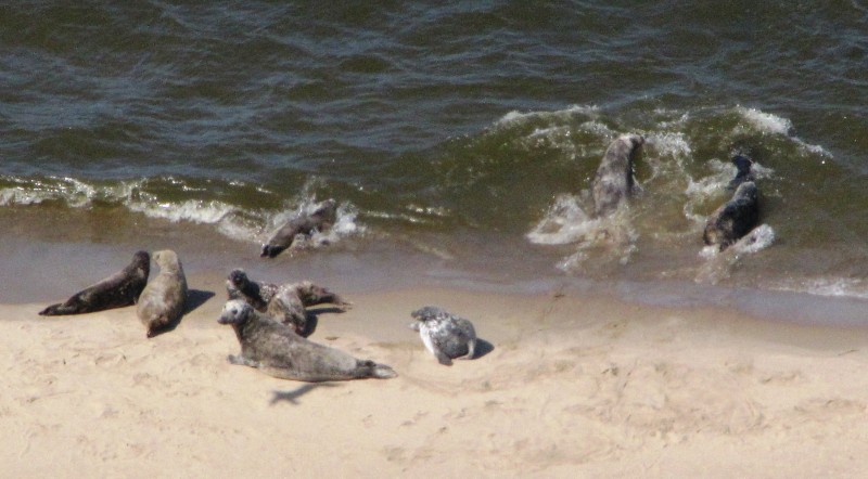 Stado fok liczące 13 osobników sfotografowała załoga śmigłowca Morskiego Oddziału Straży Granicznej „Anakonda”. Ssaki wylegiwały się na plaży w rezerwacie „Mewia Łacha” niedaleko Mikoszewa.