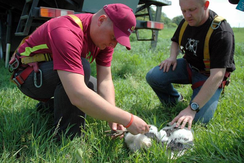 Działania pod nazwą „Energetyczni obrączkarze” organizuje dystrybutor energii Energa. Fachowe szkolenie osób, które zajmą się obrączkowaniem piskląt bociana, przeprowadzili w tym roku specjaliści ze Stacji Ornitologicznej Muzeum i Instytutu Zoologii PAN w Gdańsku oraz Polskiego Towarzystwa Przyjaciół Przyrody „Pro Natura”. Przeszkoleni energetycy w ciągu najbliższych tygodni będą obrączkować bociany, zanim te nauczą się latać i późnym latem opuszczą Polskę. Podobne akcje organizowano już w ubiegłym roku w wielu regionach kraju.