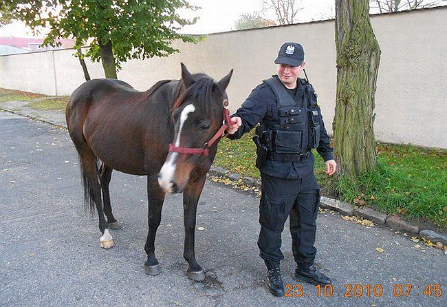 W niedzielny poranek, funkcjonariusze lęborskiej Komendy Powiatowej Policji otrzymali zgłoszenie od jednego z mieszkańców osiedla Sportowa. Między blokami przechadzał się koń.