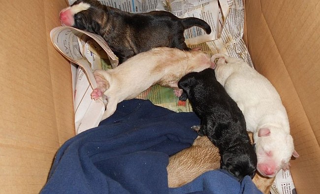 Do lęborskiej komendy policji zadzwonił mężczyzna, który usłyszał piski dochodzące z reklamówki w jednym ze śmietników na ul. Grudziądzkiej. Gdy policjanci przyjechali na miejsce okazało się, że w zawiniętej szczelnie torbie znajdowały się 4 szczeniaki.