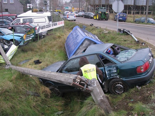 Do wypadku doszło w piątek rano na obwodnicy Lęborka w Mostach. – Według wstępnych ustaleń do zderzenia audi i vw transportera mogło dojść na skutek niedostosowania się do sygnalizacji świetlnej przez kierowcę audi – 35 -letniej kobiety jadącej ul. Kwiatową w kierunku Lubowidza i wymuszenia tym samym pierwszeństwa na jadącym od strony Słupska vw transporterze kierowanym przez 40 letniego mężczyznę – wyjaśnia lęborska policja. Oba samochody po zderzeniu wpadły do rowu uszkadzając maszt sygnalizacji świetlnej oraz latarnię. Na skutek zderzenia 36-letnia pasażerka audi oraz jej 3 letnia córka zostały przewiezione do lęborskiego szpitala.