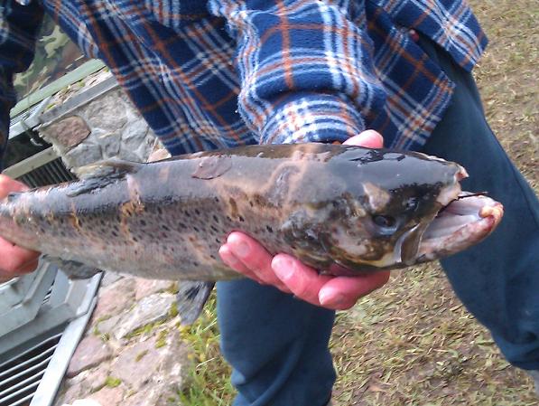 Od kilku dni w rzece umierają tysiące ryb. Przyczyną jest najprawdopodobniej wrzodzienica skóry, która dla zarażonych chorobą troci i łososi oznacza wyrok śmierci. Odpowiedzialna za chorobę bakteria powoduje bowiem, że ryby tracą naturalną ochronę w postaci łusek.
