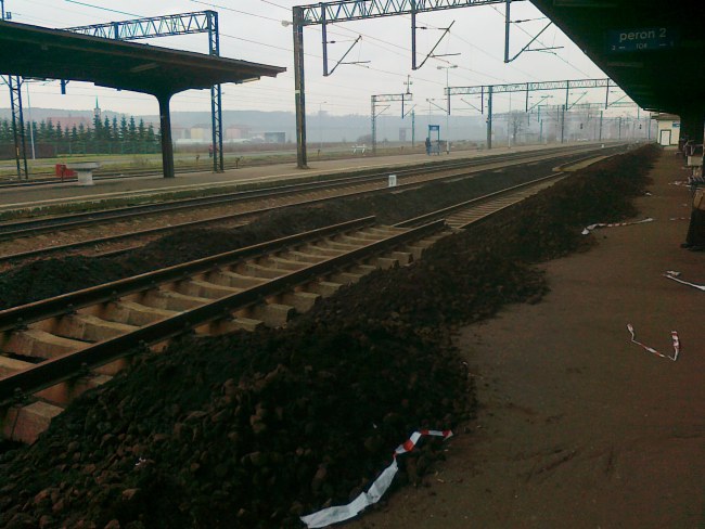 Na dworcu w Lęborku podróżni napotykają na utrudnienia. Remontowany jest tor przy peronie drugim, a cześć ziemi usypana jest na powierzchni peronu.