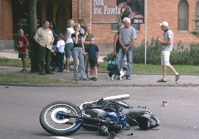 kierowała daewoo tico. Wyjechała z bocznej uliczki w centrum Lęborka na skrzyżowaniu ulicy Wyszyńskiego z aleją Wolności. W tym momencie zderzył się z nią motocyklista. 21-letni mężczyzna kierował motorem MZ 150