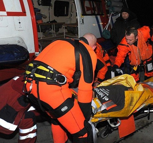O godzinie 18:35 chory został podjęty na pokład śmigłowca za pomocą noszy, a następnie przetransportowany na lotnisko w Gdyni, gdzie czekała na niego karetka. O godzinie 19:06 śmigłowiec wylądował na lotnisku. Mężczyzna był przytomny. W stanie stabilnym przekazano go obsadzie karetki.