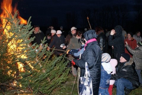 Przy ogromnym ognisku, przy którym ogrzewali się starsi i najmłodsi nasi mieszkańcy, przy kiełbaskach pieczonych w jego żarze mieszkańcy Łeby dokonali symbolicznego pożegnania bożonarodzeniowych choinek. Drzewka zostały pocięte przez strażaków OSP Łeba, spalone, a ich popiół posłuży do obsypania, a tym samym do nawożenia miejskich krzewów, jako naturalnego, a jakże cennego nawozu.