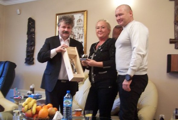 Wyrazy uznania i podziękowanie przekazał p. Rybaniec burmistrz Lęborka Witold Namyślak, który podczas wizyty wręczył symboliczny upominek – statuetkę z metalu i bursztynu z herbem Lęborka.