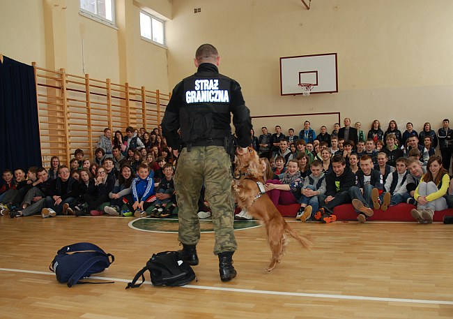 Obowiązkowym elementem każdych warsztatów był pokaz pracy Hugona – psa służbowego Straży Granicznej wyspecjalizowanego w wykrywaniu narkotyków i substancji odurzających. W Chłapowie uczniom zerówki swoje umiejętności zaprezentował także Czart, pies patrolowo – obronny. Dzięki niemu zerówkowicze dowiedzieli się jak prawidłowo reagować w trakcie spotkania z agresywnym psem.