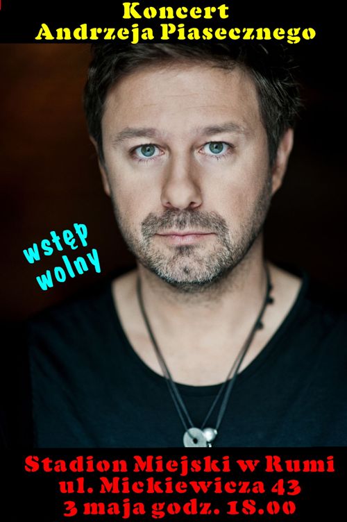 W Rumi na stadionie Miejskiego Ośrodka Sportu i Rekreacji zaśpiewa Andrzej Piaseczny „Piasek”. Koncert 3 maja o godzinie 18.00 Przed koncertem festyn rekreacyjno-sportowy z okazji obchodów 3 maja.
