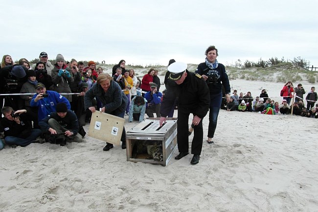 Cztery foki szare zostały wypuszczone do Bałtyku na plaży w Słowińskim Parku Narodowym. Wśród fok są trzy samce urodzone w fokarium Stacji Morskiej w Helu – Laskorn, Lubek i Lugier oraz foka z oliwskiego ogrodu zoologicznego o imieniu Aron.