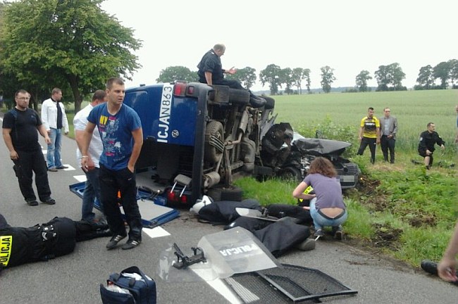 Na krajowej szóstce trwa dzisiaj wzmożony ruch z uwagi na rozgrywany wieczorem w Gdańsku mecz Grecja – Niemcy. Jadący busem policjanci, mieli zabezpieczać to spotkanie.
