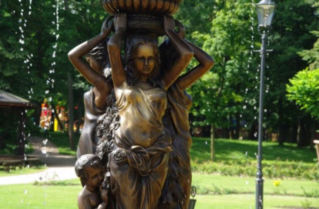 W wejherowskim Parku Miejskim zamontowano fontannę w kształcie bogiń. Nowy nabytek dodaje uroku i podnosi walor parku. Stylowa fontanna po zmroku jest podświetlana.
