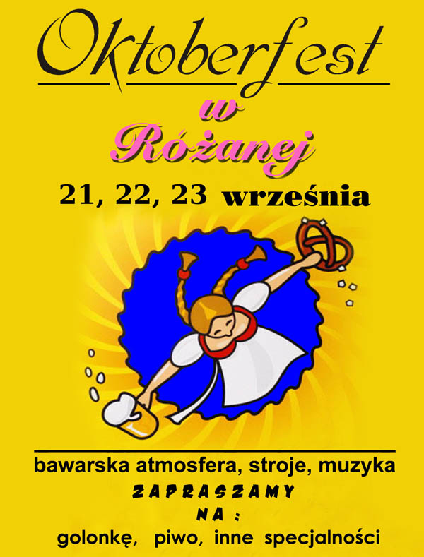 Uczestnicy mogą się nastawić na dobrą zabawę. Będą konkursy picia piwa, wspólne pieczenie kiełbasek, muzyka na żywo, bawarskie stroje i inne atrakcje. Uroczyste otwarcie całej imprezy nastąpi w piątek o godzinie 17.00. Każdy, kto kocha biesiadny śpiew, lubi potańczy,ć a przy tym napić się piwa i zjeść golonkę w iście bawarskiej atmosferze, w Różanej na pewno będzie dobrze się bawić. Wstęp na imprezę będzie darmowy.