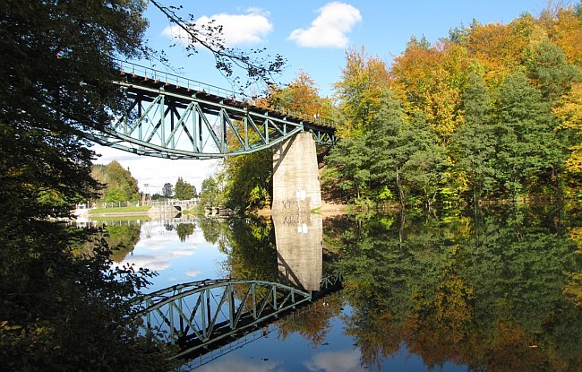 Po 6 km wędrówki wilgotnym lasem dochodzę do żelaznego mostu w Babim Dole. Staję pośrodku oszałamiającego spektaklu natury, którego wyjątkową urodę trudno opisać. Pieniąca się rzeka szumi przelewając się przez kamienny wał. Dalej w głębokiej dolinie Radunia wije się wśród zieleni łąk, ściany wąwozu, do 100 stóp wysokie, pokryte iglastym i liściastym drzewostanem, pasące się krowy pomiędzy meandrami rzeki, wszystko to tworzy idylliczny obraz pięknej natury. Także bogactwo roślin zachwyci tu każdego botanika. Z wąwozu droga prowadzi do karczmy Babi Dół, urządzono tu także schronisko studencko-uczniowskie, gdzie w lipcu chorowite dzieci miejskie mogą na koloniach wzmacniać swoje zdrowie.