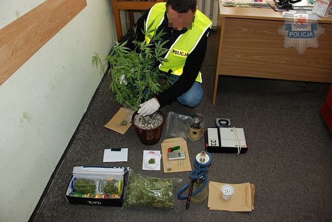 Uwagę policjantów zwrócił młody mężczyzna, który na ich widok gwałtownie zmienił kierunek marszu. Po jego zatrzymaniu okazało się, co było przyczyną takiego zachowania. 28-letni mieszkaniec Główczyc miał przy sobie ukrytą w odzieży porcję marihuany. Podczas przeszukania w mieszkaniu zatrzymanego, kryminalni odnaleźli kilka opakowań z podejrzanym suszem roślinnym. Był on ukryty w kilku miejscach: w szafach, za łóżkiem, w piwnicy, a nawet w starym magnetofonie. Ponadto w pokoju rodziców mężczyzny zabezpieczono rosnący w doniczce półmetrowy krzak konopi indyjskiej.