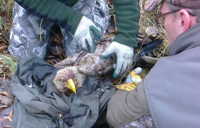 Straż Leśna wraz z miejscowymi leśnikami przy udziale przedstawiciela Komitetu Ochrony Orłów Bogusława Kotlarza dokonała wstępnej oceny stanu zdrowia bielika i podjęła decyzję o przetransportowaniu rannego ptaka do „Azylu Ptasiego” w Nadleśnictwie Wejherowo.