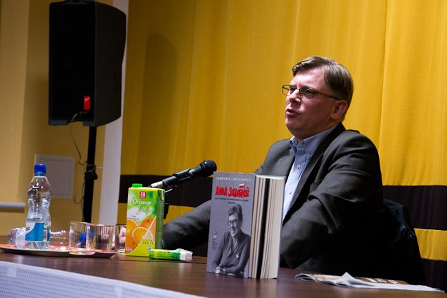Prowadzący spotkanie o. Marek Kiedrowicz poprosił autora, aby opowiedział o Annie Walentynowicz, której obszerną biografię pt. „Anna Solidarność” opublikował w 2010r. Sławomir Cenckiewicz streścił krótko losy legendarnej działaczki Solidarności. – To była wspaniała i odważna kobieta, którą państwo polskie, III RP doceniła dopiero po wielu latach – mówił podsumowując. Wspominał także o pracy nad książką, która Annie Walentynowicz bardzo się spodobała, i jak po złożeniu u wydawcy maszynopisu w pociągu z Poznania do Gdańska dowiedziawszy się o jej śmierci, dopisał ostatni rozdział.