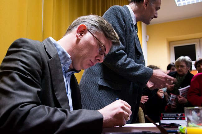 Sala wypełniona po brzegi, opowieści o kulisach pracy pisarza i długa kolejka po autografy. Tak wyglądało spotkanie autorskie z historykiem Sławomirem Cenckiewiczem w Lęborku.