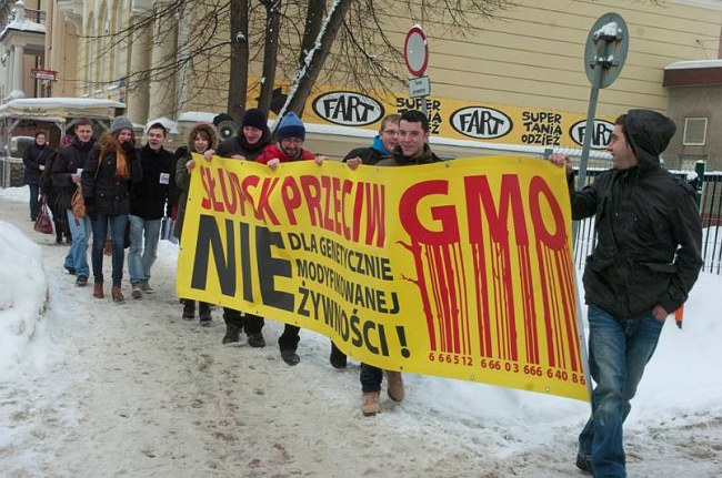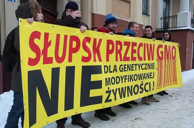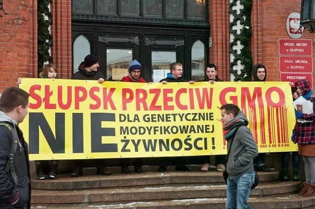 Organizatorem manifestacji przed słupskim ratuszem było Centrum Inicjatyw Obywatelskich. Uczestnicy zgromadzenia zbierali podpisy pod apelem do prezydenta Bronisława Komorowskiego, aby zawetował ustawę pozwalającą modyfikować genetycznie nasiona i rośliny. Zdaniem protestujących, którzy przemaszerowali ulicami Słupska, GMO nie rozwiąże problemu głodu na świecie. Pozwoli jedynie osiągać gigantyczne zyski największym światowym koncernom spożywczym.