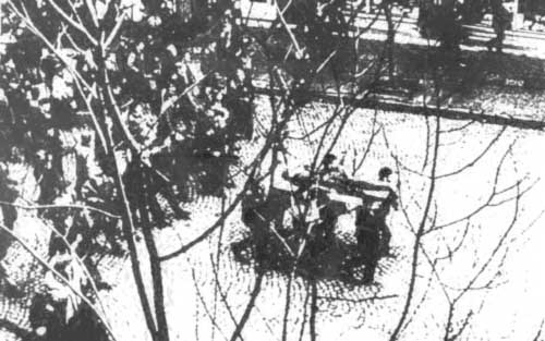 Po porannej masakrze na przystanku SKM Gdynia Stocznia, w centrum Gdyni uformowano pochód z biało-czerwonymi flagami, który ruszył ulicami 10 Lutego i Marchlewskiego w kierunku przystanku Gdynia-Stocznia, gdzie starł się z wojskiem. Pochód zebrał się ponownie na ul. Czerwonych Kosynierów i ruszył do centrum Gdyni. Na czele pochodu niesiono na drzwiach ciało zabitego „Janka Wiśniewskiego” (Zbyszka Godlewskiego), za nim niesiono zakrwawione narodowe flagi. Pochód ten doszedł do urzędu miejskiego przy ulicy Świętojańskiej, gdzie doszło do kolejnych starć z mundurowymi służbami komunistycznego reżimu. Tego dnia śmierć poniosło 16 osób, w tym wiele młodzieży oraz osoby przypadkowo znajdujące się w mieście podczas walk demonstrantów z milicją i wojskiem.