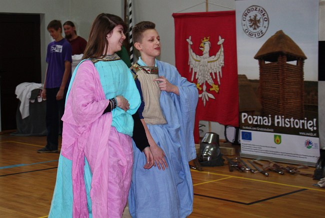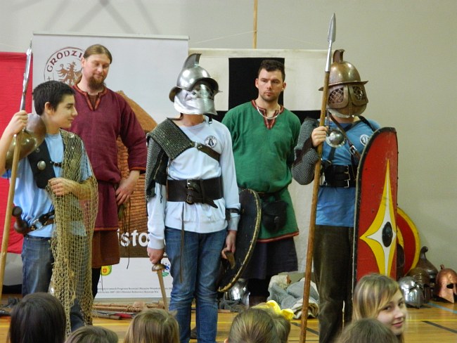 Uczyć i bawić jednocześnie – to idea warsztatów, w czasie których młodzież miała okazję poznać historię w ciekawy sposób. Gimnazjaliści zostali wprowadzeni w tajniki kunsztu rycerskich pojedynków, poznali elementy ubioru rycerzy i gladiatorów.