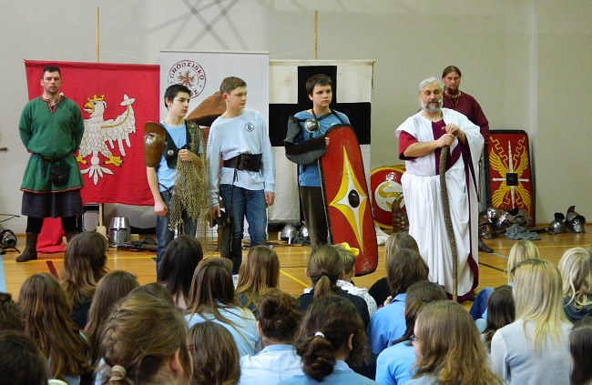 Uczniowie w kolczugach, uzbrojeni rycerze, walki gladiatorów – tak wyglądała lekcja historii w Gimnazjum nr 2 im. Jana Heweliusza w Gdańsku. Grodzisko Owidz przygotowało dla młodzieży „Żywą lekcję historii”.
