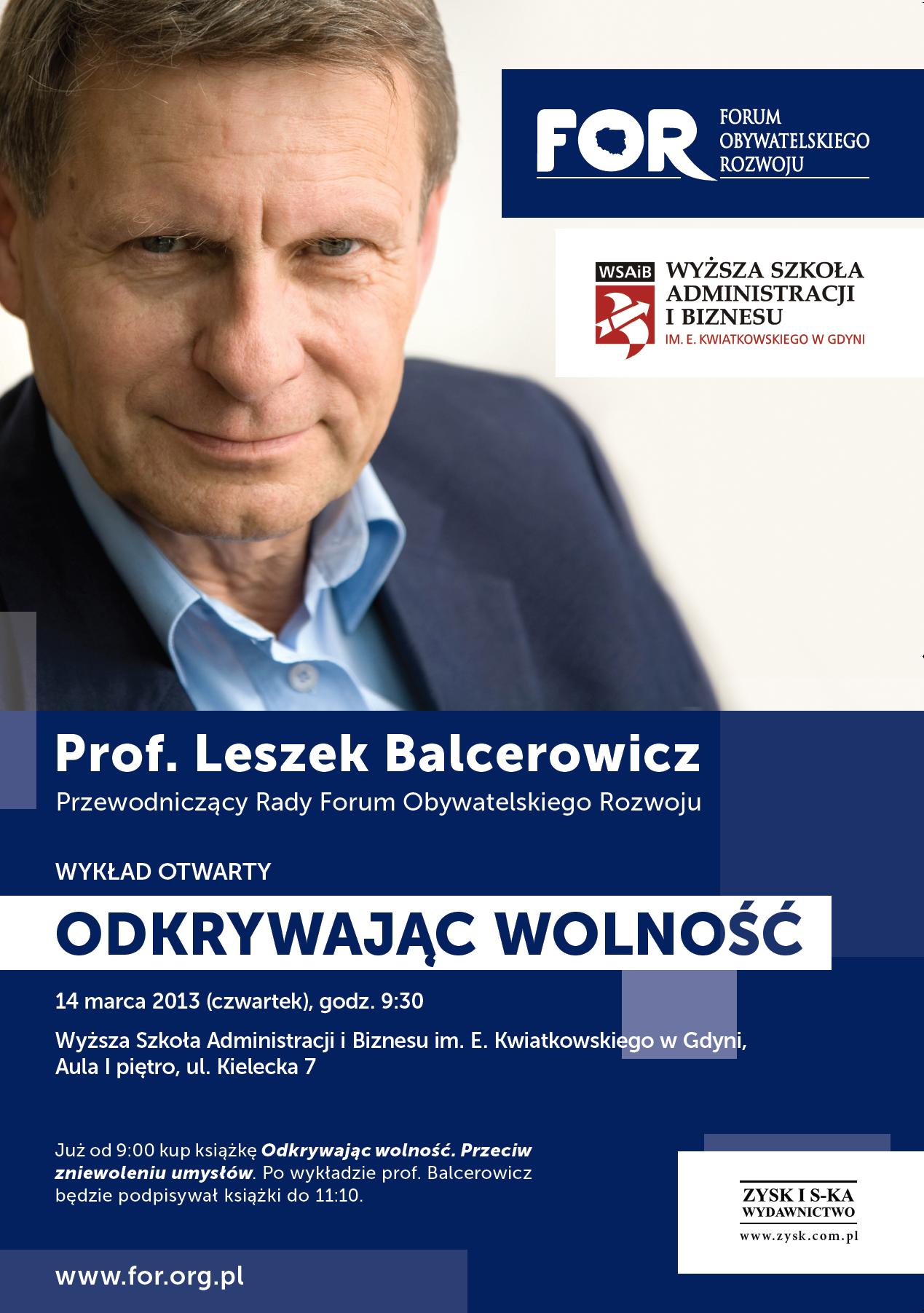 W czwartek, 14 marca 2013 r. wyjątkowe spotkanie z Leszkiem Balcerowiczem w Wyższej Szkole Administracji i Biznesu im. E. Kwiatkowskiego w Gdyni.