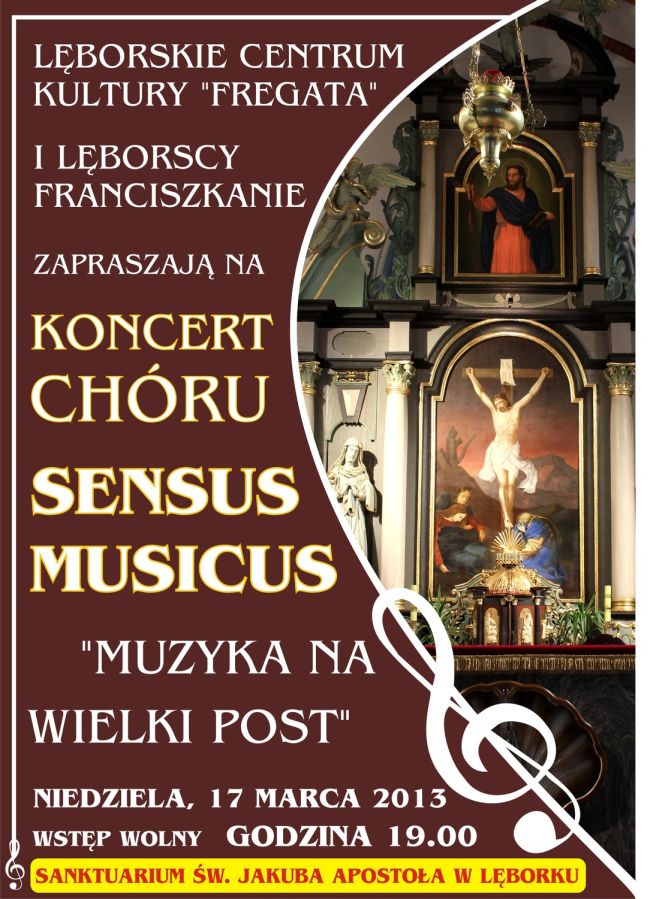 Na koncert wielkopostny chóru „Sensus Musicus” pod kierownictwem Tadeusza Formeli zaprasza Lęborskie Centrum Kultury „Fregata”.