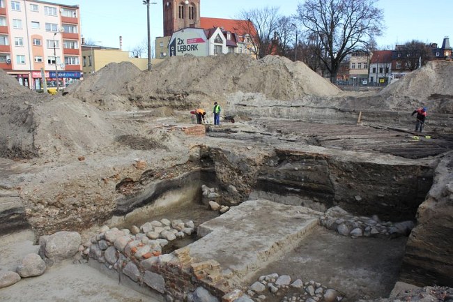 Prowadzone na Placu Pokoju w Lęborku prace archeologiczne pozwalają przybliżyć współczesnym mieszkańcom miasta dawny obraz tego miejsca. Pracownicy natrafili już na kilka interesujących elementów.