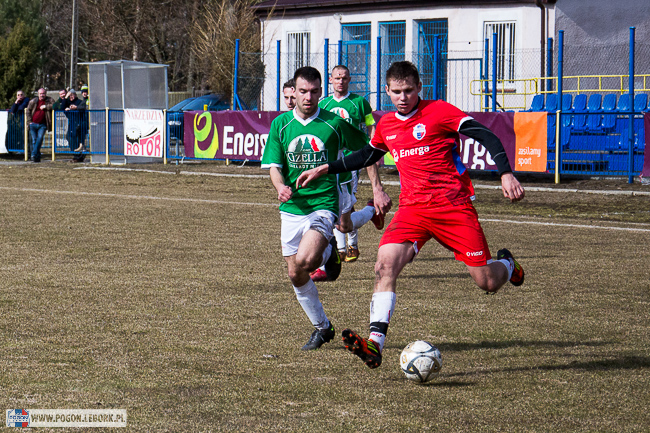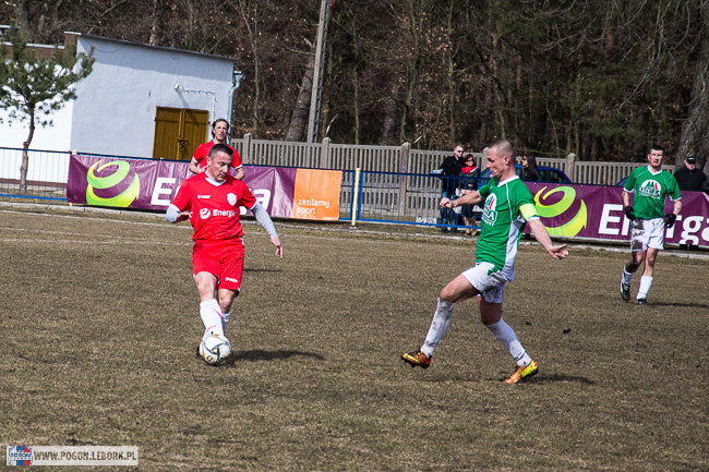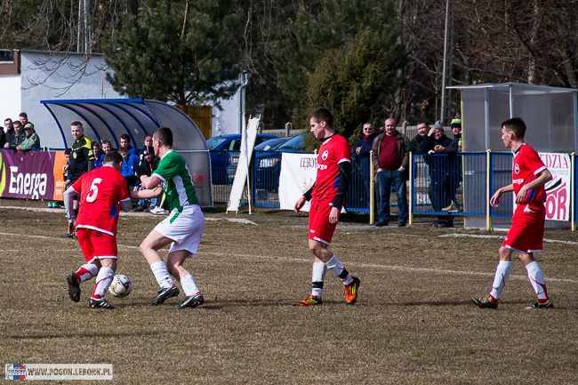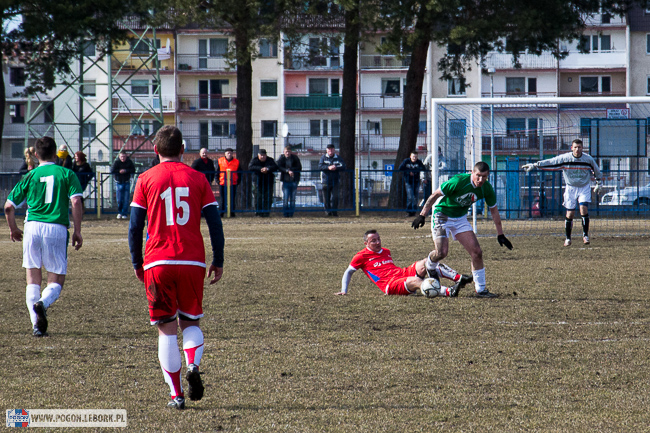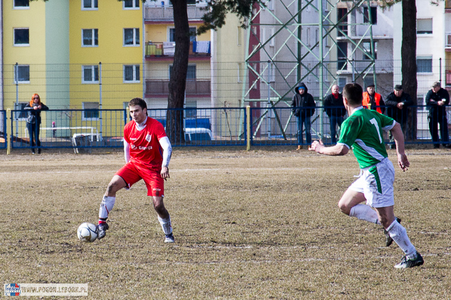 Pogoń Lębork po raz pierwszy w tym roku rozegrała mecz na własnym boisku. Mimo, że spotkanie było zagrożone odwołaniem przez zmieniającą się pogodę, to ostatecznie dzień zakończył się piękną aurą i ładnym wynikiem gospodarzy z Lęborka.