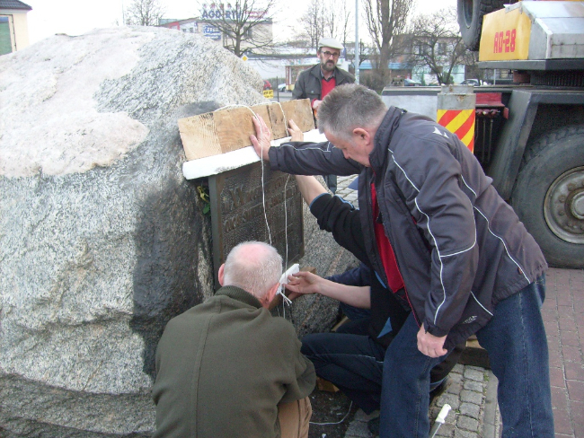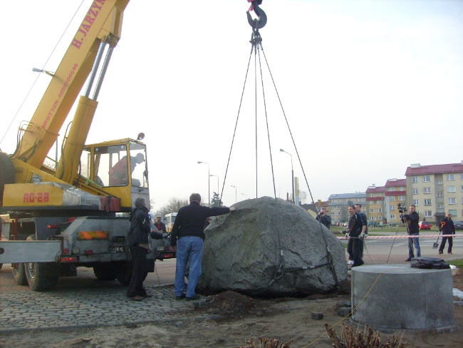 – Prawie czterometrowy pomnik projektu dr Tomasza Sobisza w otoczeniu nowej zieleni stanie za obeliskiem upamiętniającym 20- lecie pontyfikatu Ojca Świętego. Dlatego 23 kwietnia ponad 27 tonowy obelisk został przesunięty o kilka metrów w prawą stronę na swoje nowe miejsce – tłumaczy Teresa Pranga, rzecznik prasowy Społecznego Komitetu Budowy Pomnika JP II w Lęborku. – Będzie on stanowił integralną część miejsca, gdzie już 18 maja odbędą się uroczystości poświęcenia pomnika Ojca św – dodaje.