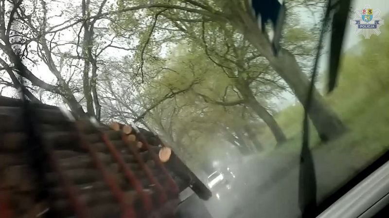 Policjanci z Lęborka poszukują kierowcy samochodu ciężarowego scania o nr rej. GSL26WL, który 9 mają przewożąc bale drewna, omal nie doprowadził do poważnego wypadku drogowego. Kierowca scani prawdopodobnie nieprawidłowo zabezpieczył przewożony ładunek i w trakcie jazdy drogą W214 w miejscowości Rybki jedna z dużych bali drewna spadła z naczepy i omal nie uderzyła w jadący z przeciwka samochód osobowy. Całe zdarzenie przypadkowo nagrał kierowca osobówki, w kierunku której leciała rozpędzona kłoda drewna i minęła jego samochód o kilka centymetrów. Kierowca ciężarówki prawdopodobnie nie zauważył co się stało i pojechał dalej bez zatrzymywania.