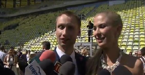 – Jesteśmy umiarkowanymi kibicami sportowymi, bardziej chcieliśmy wziąć ślub w nietypowym miejscu, chcieliśmy przeżyć te chwilę w niezwykły sposób – tłumaczą Iga i Konrad. Młodej parze ślubu udzielił prezydent Gdańska, Paweł Adamowicz. – To dla nas wyróżnienie. Czujemy się wyjątkowo – dodają.