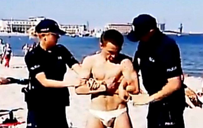 Do niecodziennej interwencji policji doszło w niedzielę w Gdyni. Funkcjonariusze wezwani przez innych plażowiczów starali się wyprowadzić z plaży dziwnie zachowującego się mężczyznę. W krótkim czasie stali się pośmiewiskiem dla sporej grupy młodych ludzi na plaży.
