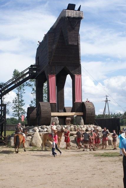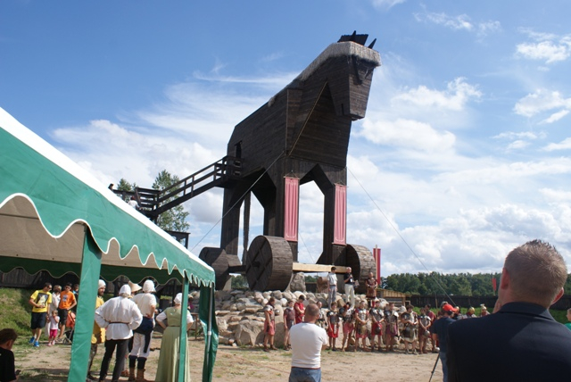 Oficjalne odsłonięcie oraz potwierdzenie rekordowych wymiarów konia trojańskiego w Oskowie, było częścią turnieju rycerskiego i łuczniczego zorganizowanego przez grupę rekonstrukcyjną Legion X Roma oraz Urząd Gminy Cewice. Dodatkowymi atrakcjami były pokazy musztry rzymskich legionów, atak na gród, zabawy plebejskie z publicznością a także pokaz ogni.