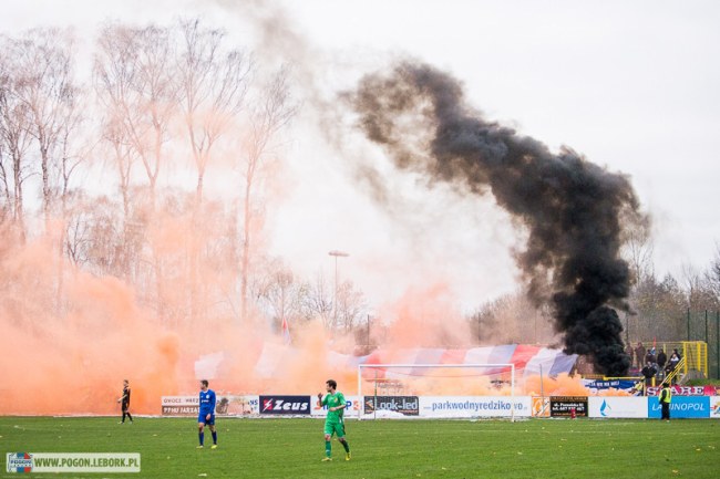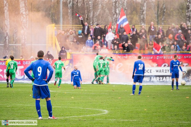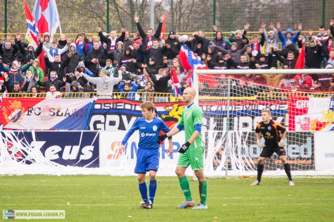 W emocjonującym spotkaniu, które przyciągnęło na stadion przy ul. Zielonej rekordową w tym sezonie publiczność, Gryf Słupsk pokonał Pogoń Lębork 3:1. Meczu nie obejrzeli kibice z Lęborka, którzy mimo zakazu wejścia na obiekt, przyjechali, aby wspierać swoją drużynę zza płotu. Kibice Gryfa pod koniec spotkania zostali spacyfikowani przed policyjne oddziały prewencji.