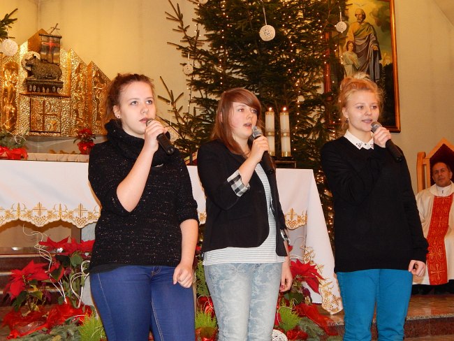 Wystąpiły cztery grupy: Zespół młodzieżowy „Młodzëzna” i zespół dziecięcy „Spiéwné kwiôtczi” – oba z Banina, zespół folklorystyczny „Mùlczi” z Miszewa oraz uczniowie Zespołu Szkół w Czeczewie. Pierwsze trzy grupy działają pod egidą partu ZKP w Baninie przy wsparciu Urzędu Gminy w Żukowie. Grupy wykonały utwory: „Gdy śliczna Panna, „Zrodzony na sankù”, „Bòżiczk”, „Last Christmas”, „Pòjmë z gwiôzdą”, „Będą święta”, „W tę noc świętą”, „Żużkôj Jezëskù”, „Kòlãda ùbëtkù” i na zakończenie „Żegnôj swiat całi”.
