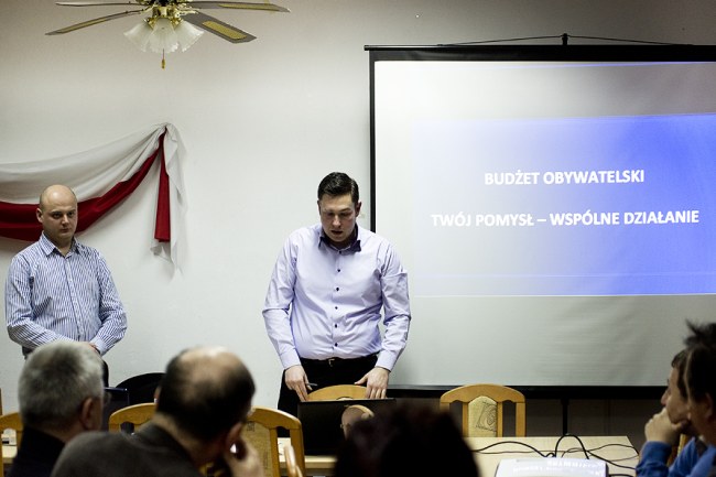 Przybyli mieszkańcy mieli okazję zapoznać się z ideą projektu. W trakcie prezentacji prowadzący omówili zadania własne gminy, których mogą dotyczyć składane wnioski, sposób wypełniania formularzy oraz zasady głosowania na poszczególne projekty. Ponadto zaprezentowane zostały przykładowe pomysły, które już zostały zrealizowane lub są w trakcie realizacji w innych miastach.