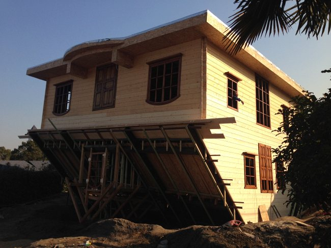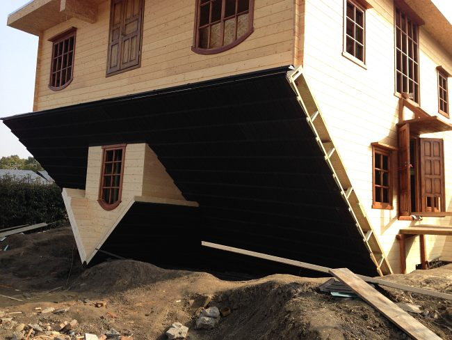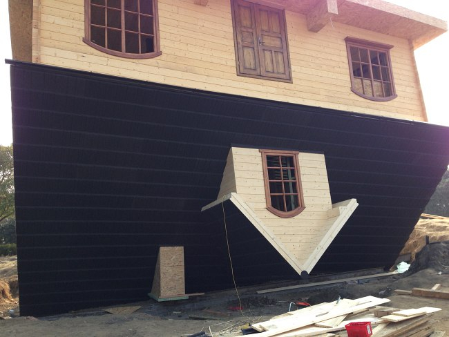 Kopia słynnego domu postawionego na głowie w Szymbarku powstaje w parku rozrywki w chińskim Szanghaju. W jego pobliżu budowana jest także karczma z pruskiego muru. Pierwsi zwiedzający pojawią się w nich wiosną,a już teraz tylko u nas zdjęcia z placu budowy.