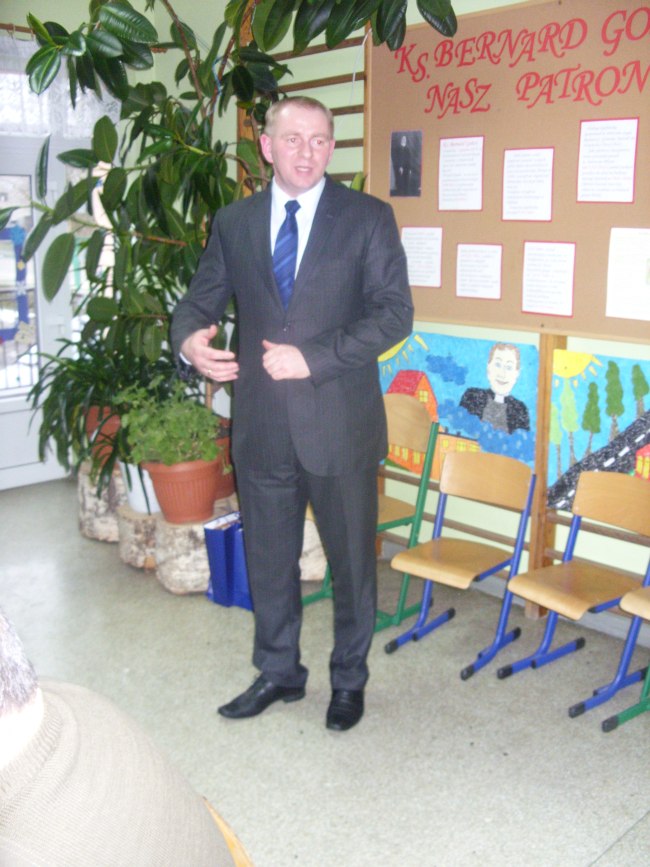 Dzisiaj obchodzicie radośnie święto Waszego Patrona śp. księdza Bernarda Gończy …bohatera, tego, co poprowadził naszą ówczesna społeczność do lokalnego bohaterskiego czynu, …z którego dzisiaj zarówno Wy jak i My starsi jesteśmy dumni, stajemy z naszymi stanicami tu w tej Strażnicy Pamięci i Patriotyzmu, w tym naszym sanktuarium patriotyzmu, w panteonie oznaczonym wieloma nazwiskami naszych bohaterów… pamiętamy nie tylko o ich bohaterstwie, ale o zwyczajności ludzkiego i obywatelskiego trudu życia, które w sumie stanowiło o tym, iż Oni i Ojczyzna stanowili jedno…