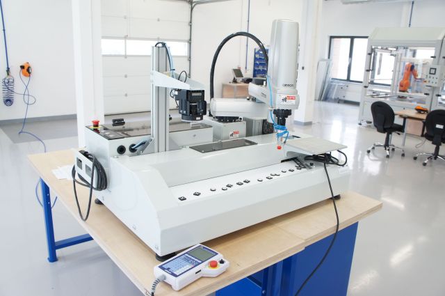W Pracowni znajdują się: stanowisko z robotem typu DELTA, stanowisko z dwoma robotami typu SCARA z jednym w pozycji podwieszonej, mobilne stanowisko z robotem typu SCARA, stanowisko zaawansowanego i bardzo wydajnego systemu wizyjnego, mobilne stanowisko z systemem i czujnikiem wizyjnym.