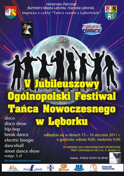 W najbliższy weekend Lębork zamieni się w centrum tańca nowoczesnego. W sobotę i niedzielę w Miejskiej Hali Sportowo-Widowiskowej przy Gimnazjum nr 2 w Lęborku odbędzie się V Jubileuszowy Ogólnopolski Festiwal Tańca Nowoczesnego.