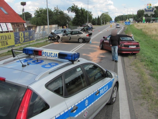 Przez ponad 4 godziny lęborscy policjanci zabezpieczali miejsce wypadku do którego doszło w sobotę w Ługach. Ze wstępnych ustaleń funkcjonariuszy wynika, że jadący w kierunku Wejherowa 23-letni kierowca opla z okolic Słupska uderzył w tył jadącego przed nim renault kierowanego przez 36-letniego mieszkańca Włocławka, który siłą uderzenia został wypchnięty na przeciwny pas ruchu i zderzył się czołowo z fordem, kierowanym przez 30-latka z Lęborka. Wszyscy kierowcy zostali przebadani na zawartość alkoholu, byli trzeźwi.