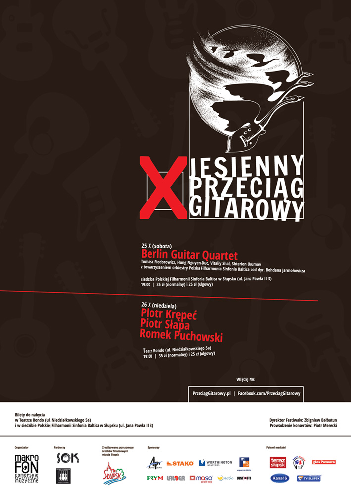 X jesienny przeciąg rozpocznie się 25 października koncertem Berlin Guitar Quartet w słupskiej Filharmonii. W niedzielę 26 października festiwal zawita do Teatru Rondo gdzie o 19.00 wystąpią: Piotr Krępeć, Piotr Słapa i Romek Puchowski.