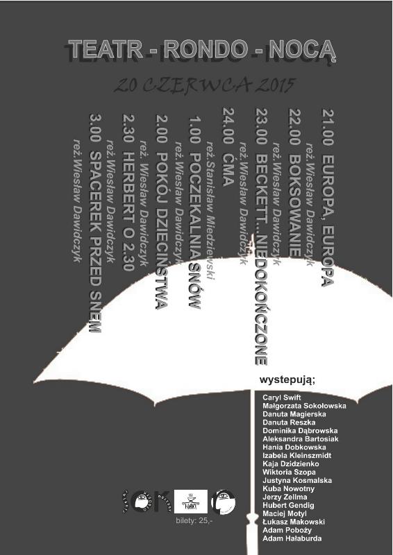 Wyjątkową noc i dzień proponuje widzom Teatr Rondo. 20 czerwca na scenie teatru zostaną zaprezentowane spektakle, które wystawiane będą od zmierzchu do świtu. Ta niezwykła teatralna noc rozpocznie się o godz. 21.00, wraz z zachodem słońca, a zakończy się ze wschodem punktualnie o 4.14 wspólnym odśpiewaniem pieśni „Opadły mgły, wstaje nowy dzień” pod miejskim ratuszem. Bilety na cały wieczór (i noc): 25 zł.
