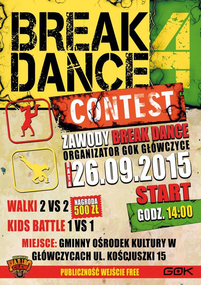 Miejsce wydarzenia to Gminny Ośrodek Kultury w Główczycach – miejsce wyjątkowe i jak najbardziej wpasowujące się w ramy zawodów breaka. Dobra akustyka połączona z dobrym nagłośnieniem zdecydowanie pozwolą w pełni wykorzystać umiejętności tancerzy. O samopoczucie tancerzy w trakcie wyjść zadba Dj Bart.