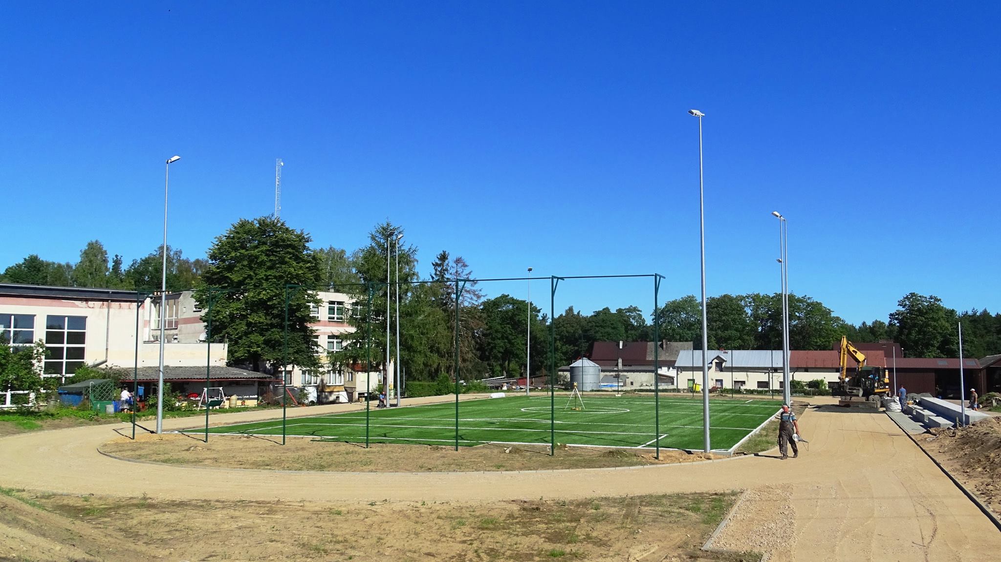 Będzie to nowoczesny obiekt, składający się z boiska wielofunkcyjnego o nawierzchni poliuretanowej 800 m2, boiska do piłki nożnej z trawy syntetycznej 1150 m2, bieżni, skoczni w dal i trybuny. Inwestycja obejmuje także budowę ciągów komunikacyjnych, miejsc postojowych, oświetlenia terenu i ogrodzenia.