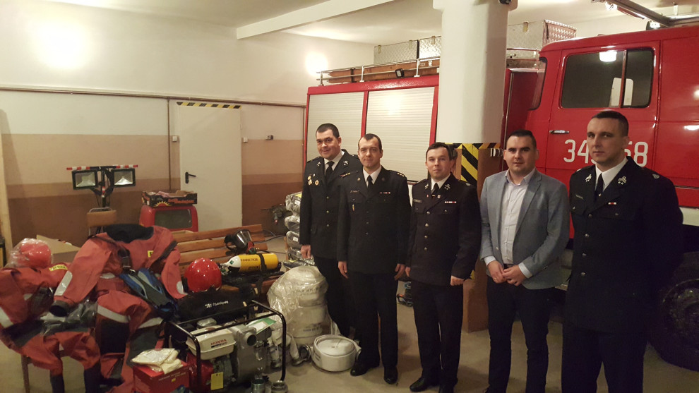 Sprzęt przekazali wspólnie kpt. Jędrzej Banasik z Komendy Miejskiej PSP w Słupsku oraz Dawid Litwin, wójt gminy Potęgowo. Stronę przyjmującą reprezentował dh Łukasz Ulaszek, prezes OSP w Potęgowie i dh Marcin Drużba, gospodarz OSP w Potęgowie.